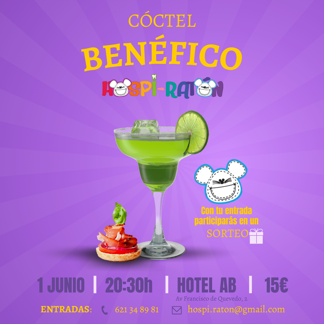 El próximo viernes, 1 de junio tendremos el placer de invitaros a nuestro Cóctel Benéfico de Hospi Ratón.
